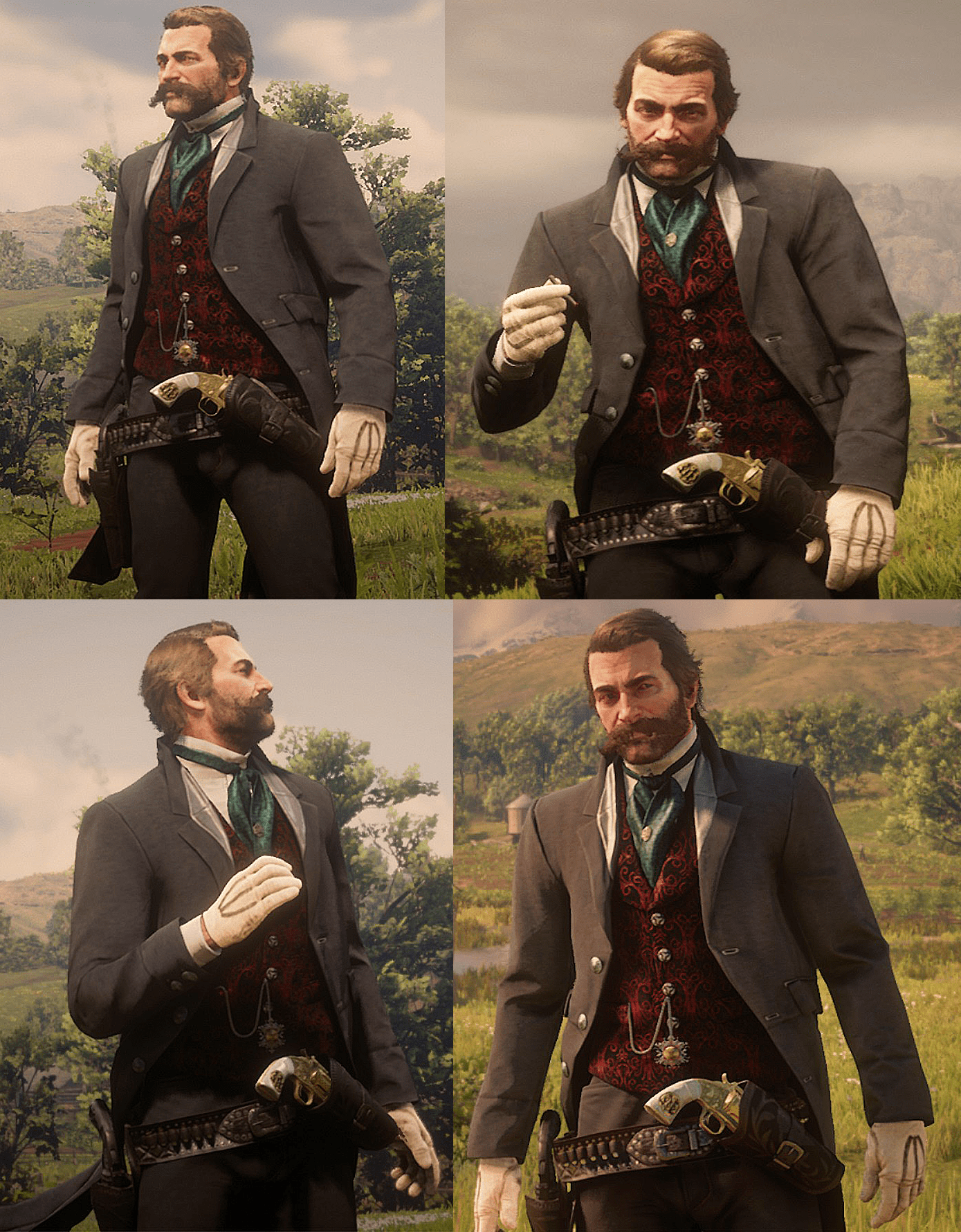 | she/her | 18+ | please do not use or repost my photos without my permission. While in saint denis, arthur wore more sophisticated outfits. Pride, never forget the pride in our work. Complimented with work pants and preacher's boots, it is faultless in … Later in the game you will have a unique changing room at your home in beecher's hope. You can change your outfits in the wardrobe menu. The wardrobe can be found in arthur morgan's wagon at the gang's camp. A handsome ensemble welcome at any dinner party we draw your attention to our line of outfits featuring a fancy striped everyday overshirt accentuated by a fancy patterned opulent vest. Ive changed arthur's appearance with story progression and geography... | she/her | 18+ | please do not use or repost my photos without my permission.